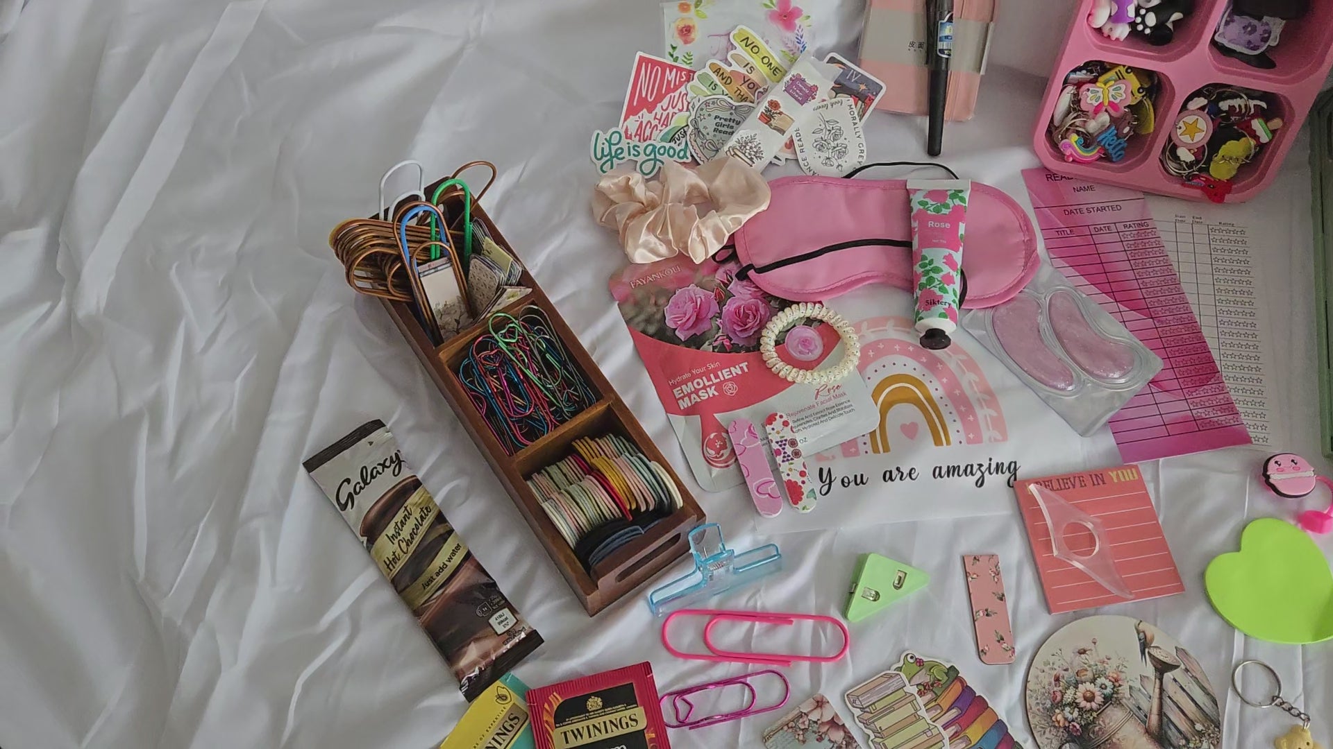 You’ll also receive 15 randomly selected goodies from my ever-growing stash! Think magnetic bookmarks, funky pens, sticker packs, journals, beauty treats, and more. I’ll do my best to colour-theme your bundle for that extra touch of magic ✨